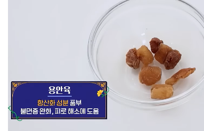 - 용안육: 피로 회복과 불면증 개선에 뛰어난 효과를 가진 용안육은, 항산화 성분이 풍부하여 노화 예방과 활력 증진에 도움을 줍니다.
