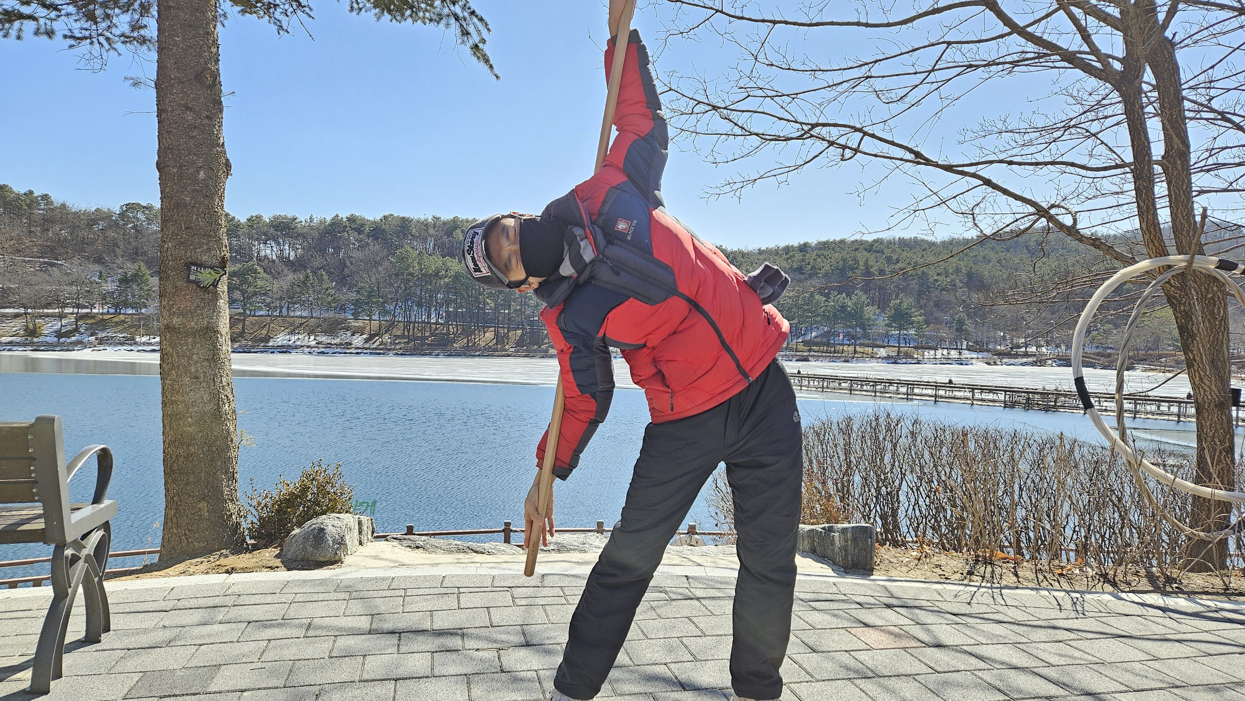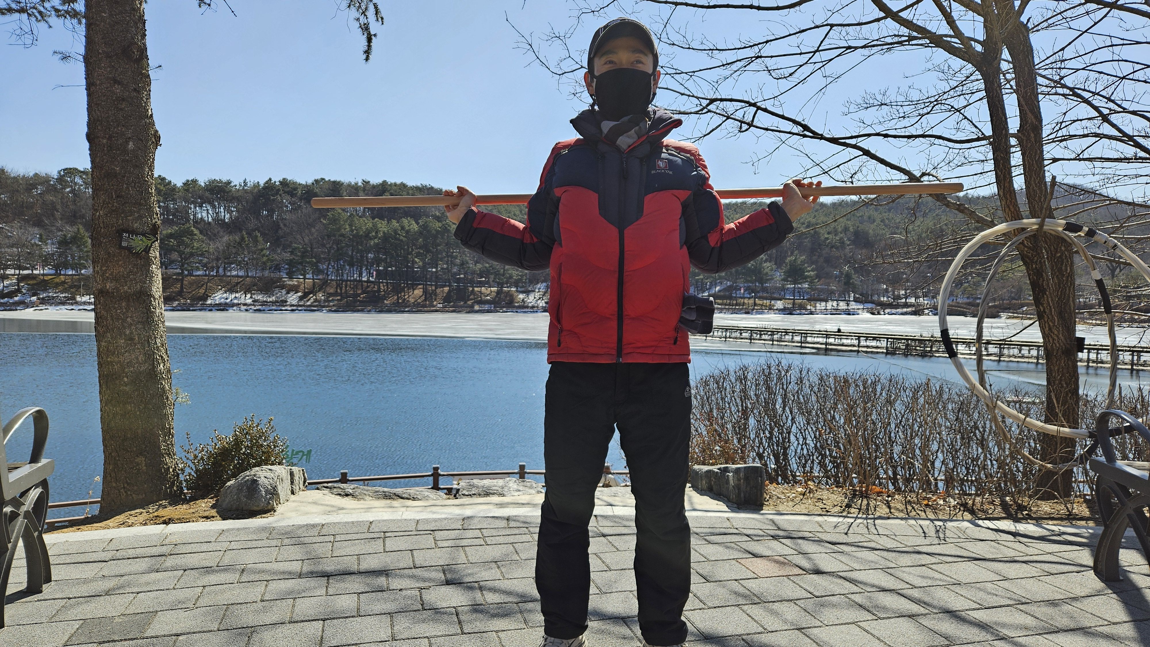 봉으로 스트레칭하면 아주 시원하고 좋습니다. 맨몸으로 스트레칭하는 것과는 비교가 안됩니다. 꼭 해보세요. 매일 하는 것을 습관화해야 합니다. 봉은 참고로 2만 원 정도입니다.