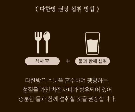 - 하루 1회, 식후에 다한방 1포 섭취