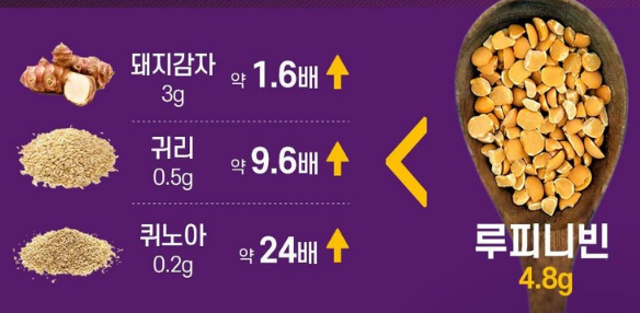 - 🥜 알레르기 주의: 루피니빈은 땅콩, 대두와 같은 콩과 식물에 알레르기가 있는 분들에게 알레르기 반응을 일으킬 수 있으므로 주의가 필요합니다.
