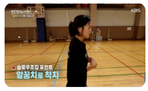 - 팔은 90도로 구부려 가볍게 흔들되, 어깨에 힘을 빼고 자연스럽게 움직입니다.