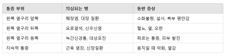 왼쪽 옆구리 통증 의심되는 병 요약
